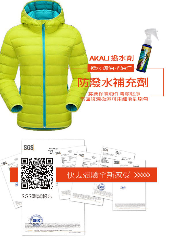 此為透氣型紡織品專用防潑水劑,因保有紡織品可水洗特性,所以用力壓或是刻意浸泡衣物,水會進入紡織品進入洗衣的流程,但只要表面再次乾燥,即可恢復防潑水特性;此非速效品,屬保養材,常為品牌織品保養首選