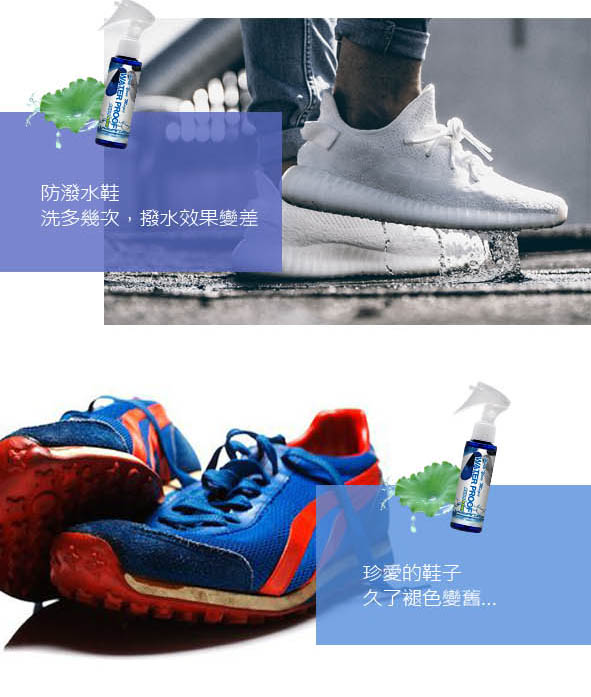 此為透氣型布類鞋用防潑水劑,因保有布面可水洗特性,所以用力壓或是刻意浸泡,水會進入布類纖維進入洗鞋的流程,但只要表面再次乾燥,即可恢復防潑水特性;此非速效品,屬保養材,常為品牌鞋品保養首選